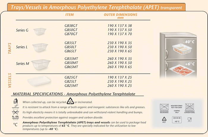 TRAYS / VESSELS IN AMORPHOUS POLYETHYLENE TEREPHTHALATE (APET) TRANSPARENT