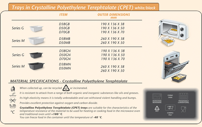 TRAYS IN CRYSTALLINE POLYETHYLENE TEREPHTHALATE (CPET) WHITE / BLACK